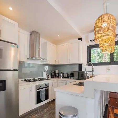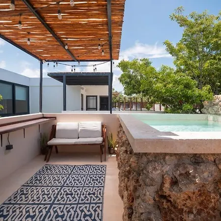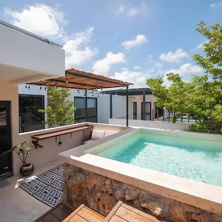 Vacation Villa Private Rooftop Pool Walk 2 Town는 툴룸 마야 유적지에서 20분 및 Tulum National Park에서 25분 거리에 있는 숙박 시설입니다. Vacation Villa Private Rooftop Pool Walk 2 Town는 손님들의 편의를 위해 책상, 책상, 커피 및 티 메이커가 마련된 객실을 제공합니다.